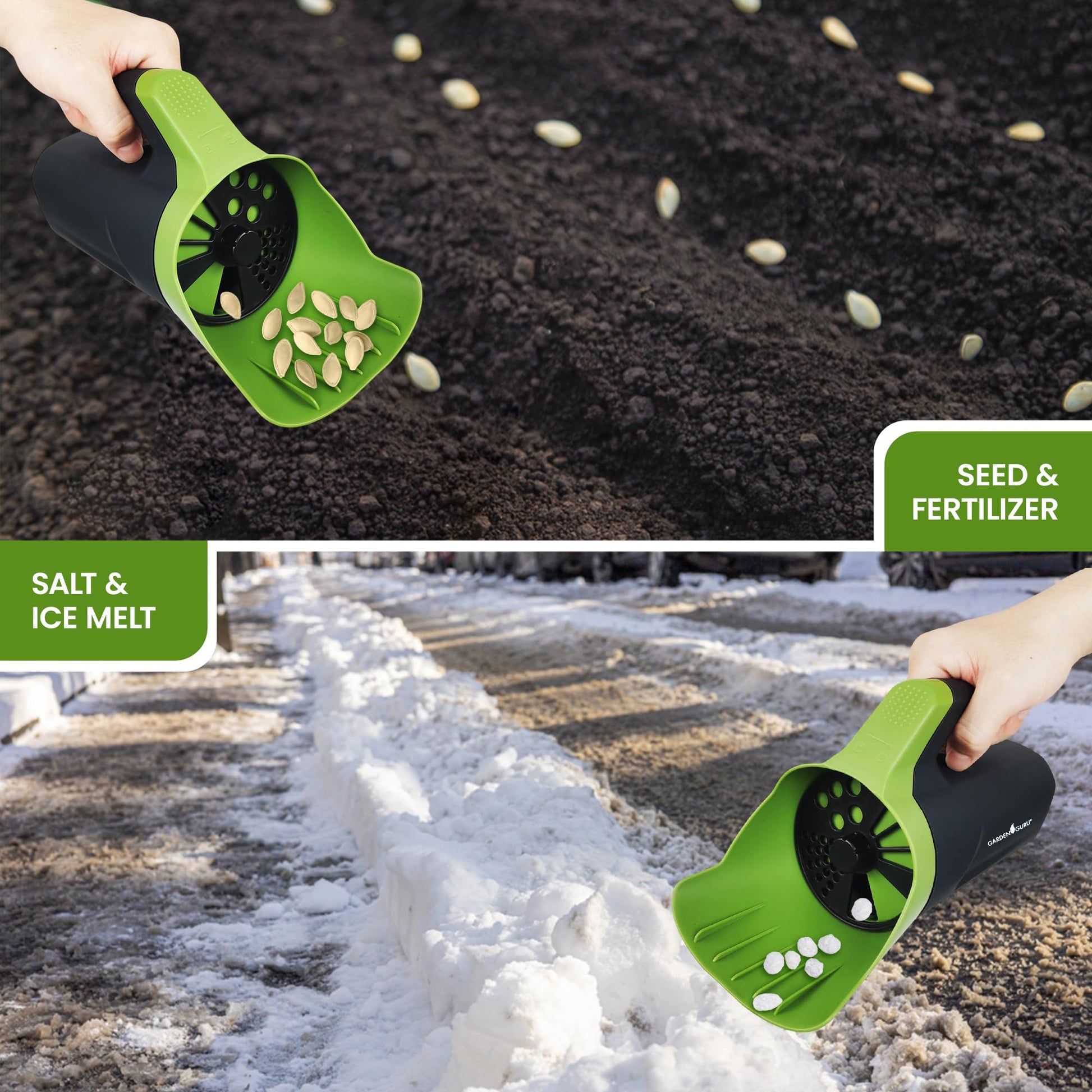 - PRECISE & EFFICIENT COVERAGE – Handheld seed spreader designed to distribute grass seed, lawn food, fertilizer, salt, or ice melt evenly for consistent results without waste. Helps create a healthy, green lawn without clumps or patchy spots.